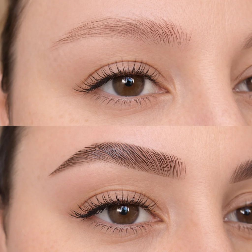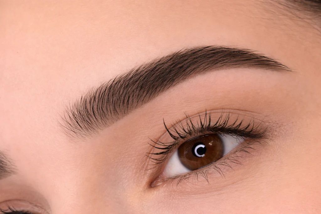 Subtelnie barwione brwi w połączeniu z Brow Lamination można podkreślić ostrą dolną linią dla większej definicji.